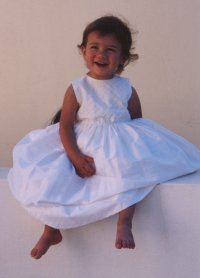 Zoe posed barefoot in her baptismal dress all around
